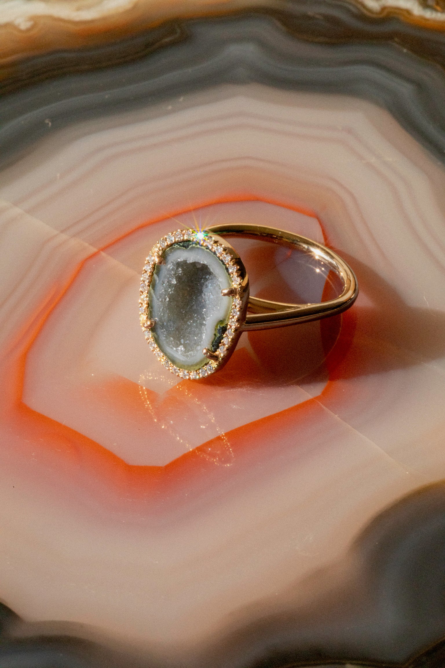 The colorful, ancient beauty of agate geodes, transformed into contemporary jewellery designs