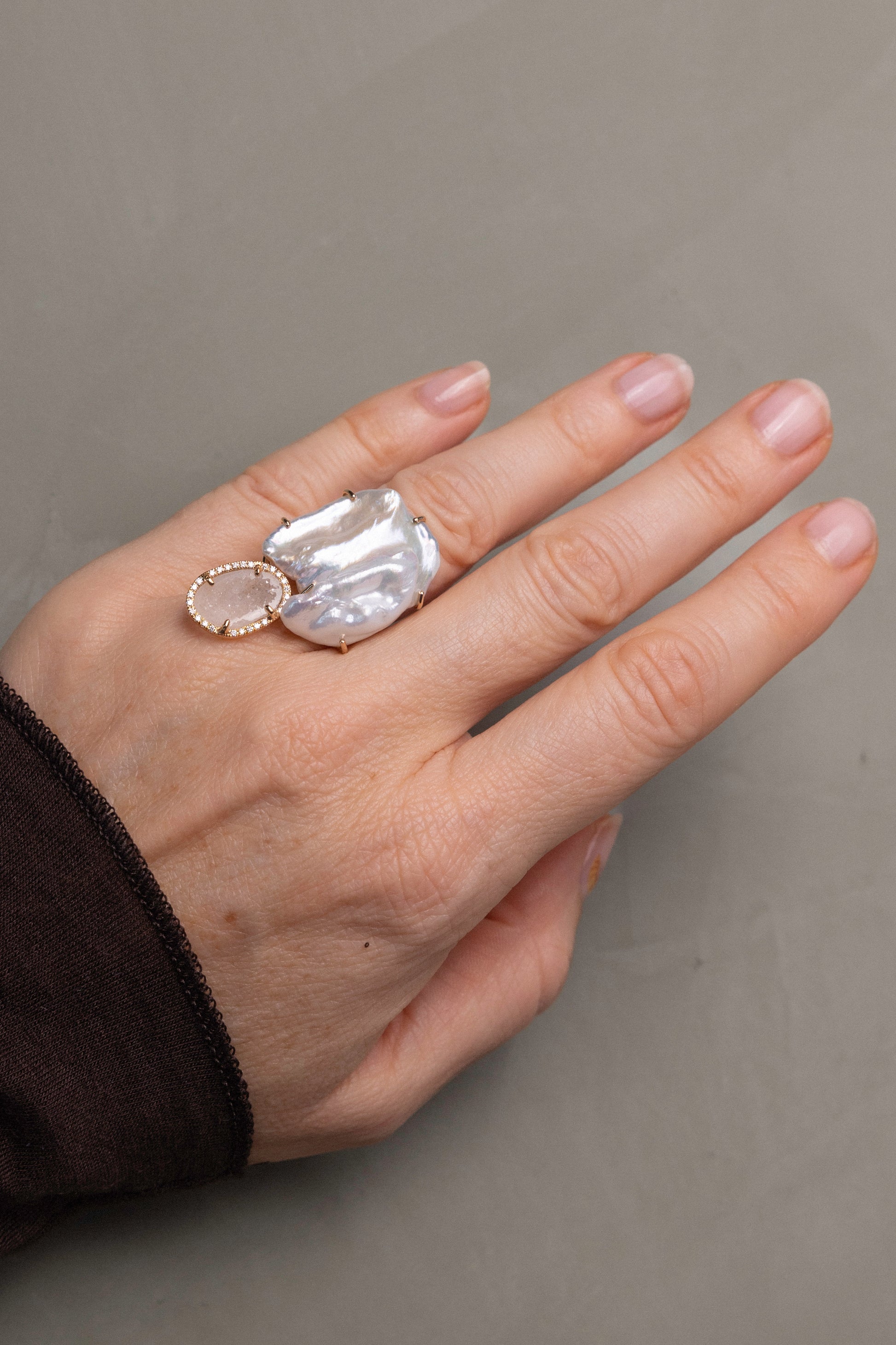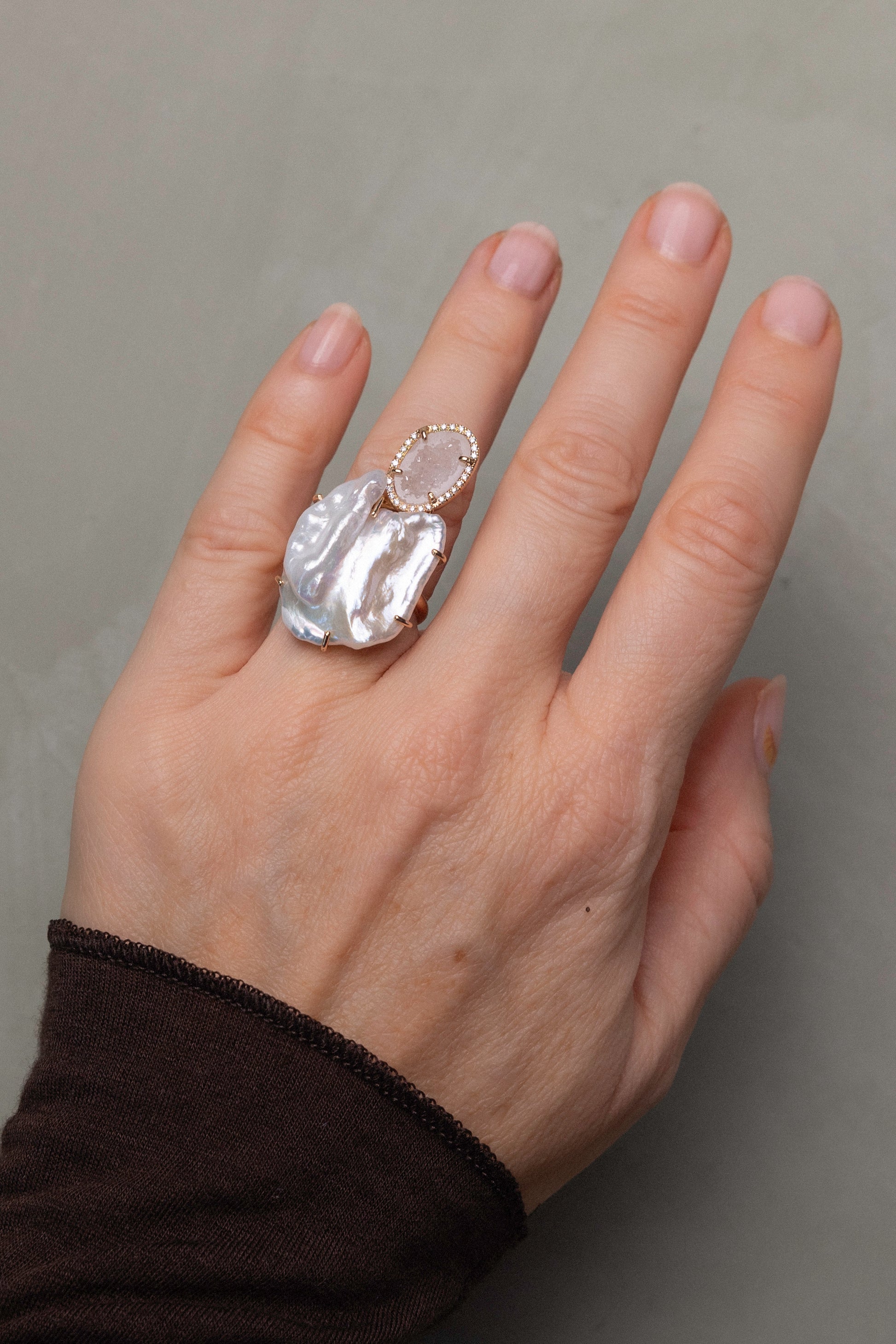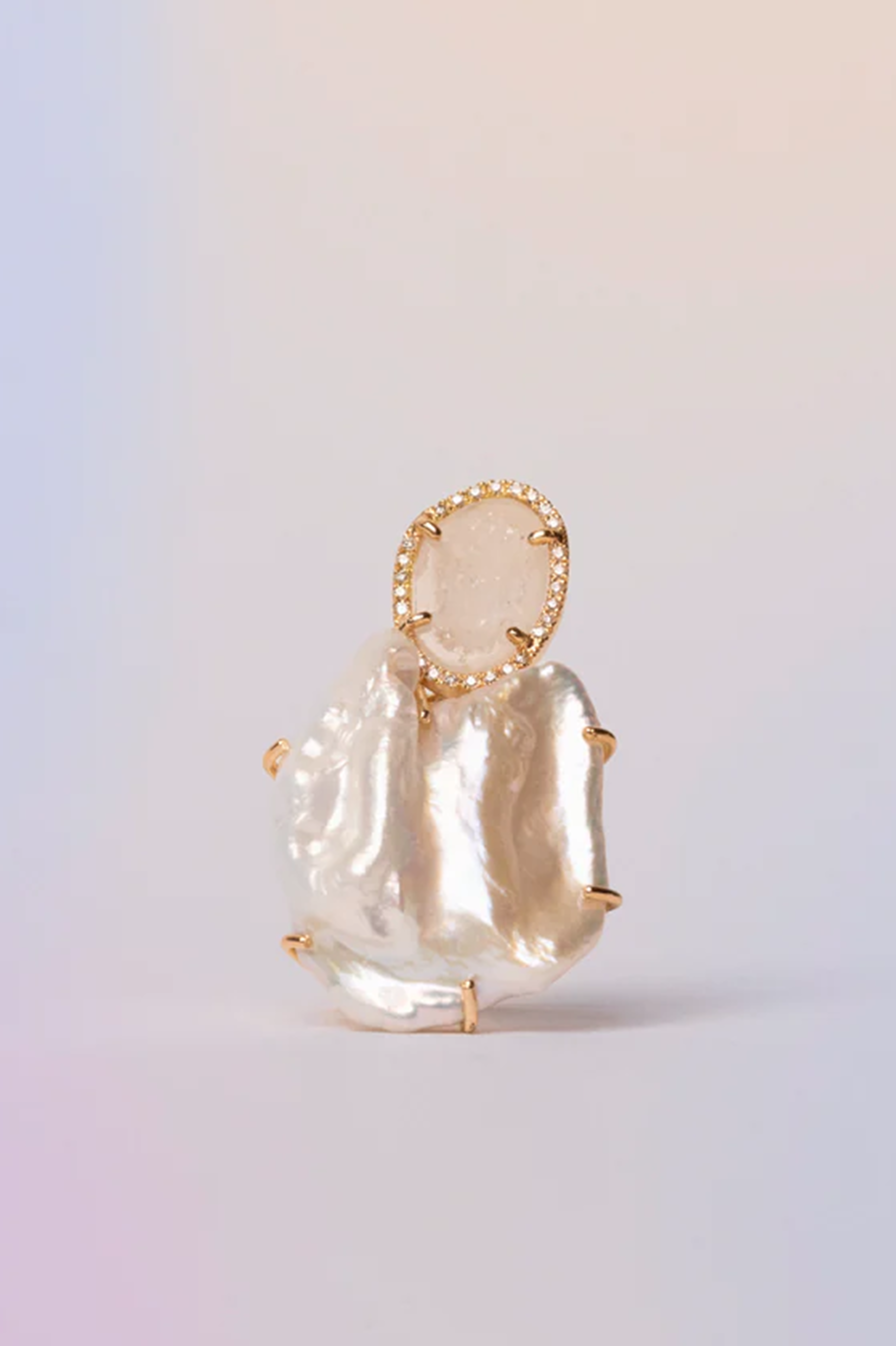 Inspired by the muse of history and poetry, this exceptional ring combines a luminescent freshwater pearl with an agate enveloped in diamonds.