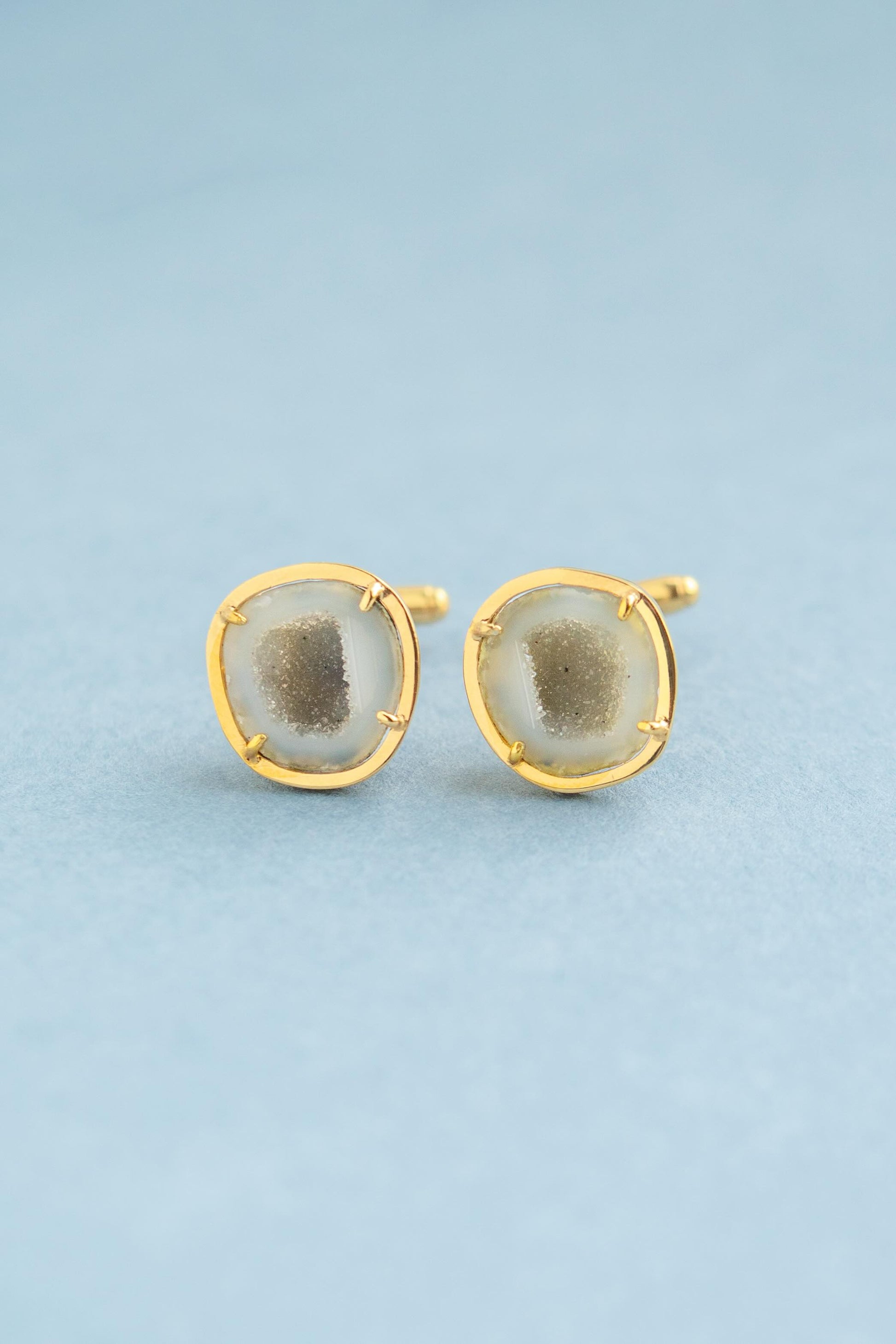 Agate cufflinks in Ag (Silver) 925 gold plated, where natural depth meets timeless sophistication.