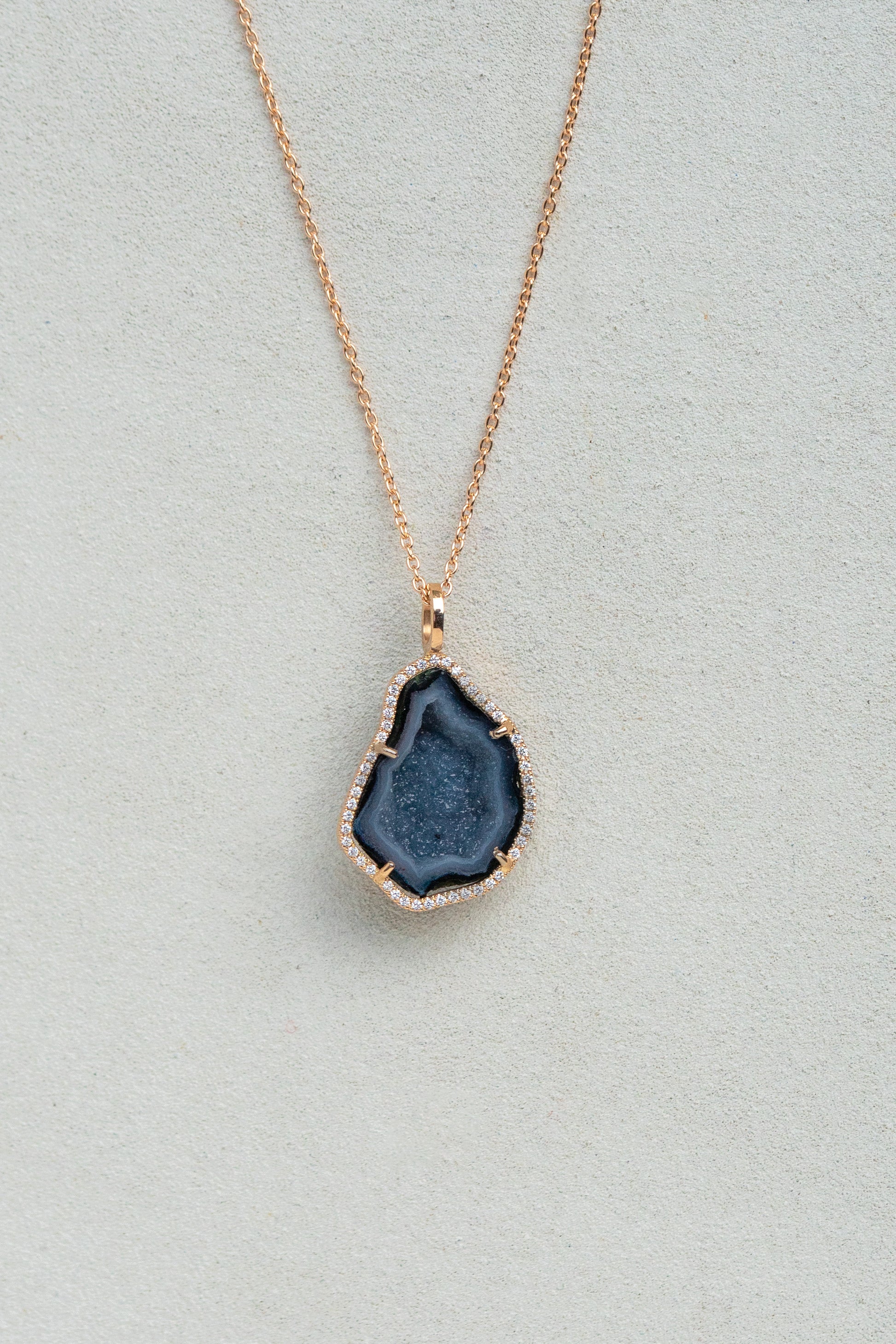 Agates encircled by a halo of diamonds, elegantly realised as a singular pendant.