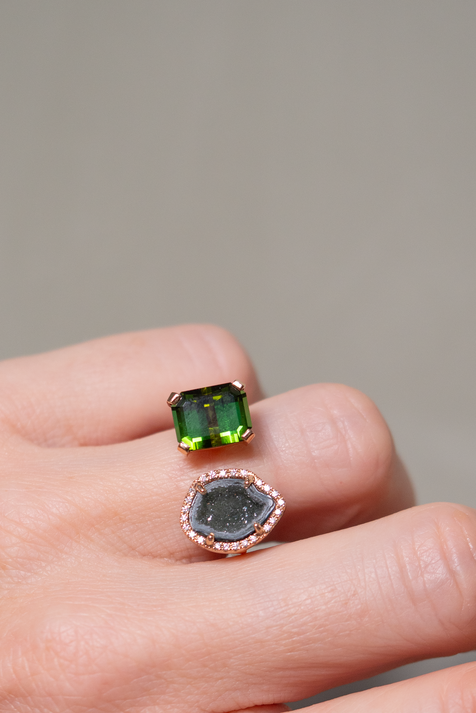Karolin Van Loon’s Rio collection rings are elegant contradictions. The organic beauty of the brand’s signature agate geodes is set alongside the perfect geometry of precious gems Van Loon found in Minas Gerais, Brazil and brought back to the brand’s studio in Antwerp’s diamond district to be expertly cut.