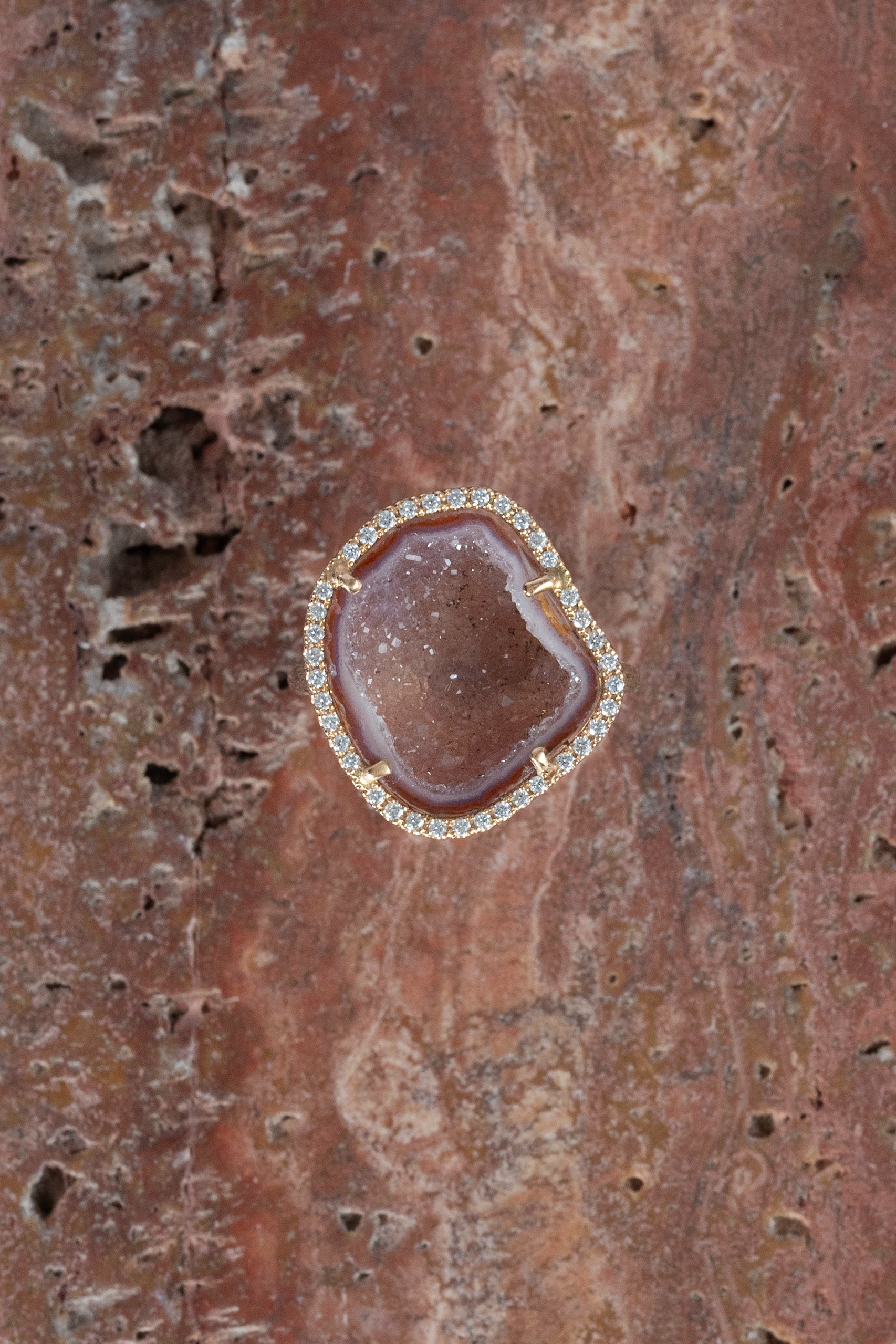 Agates encircled by a halo of diamonds, elegantly realised as a one of a kind ring.