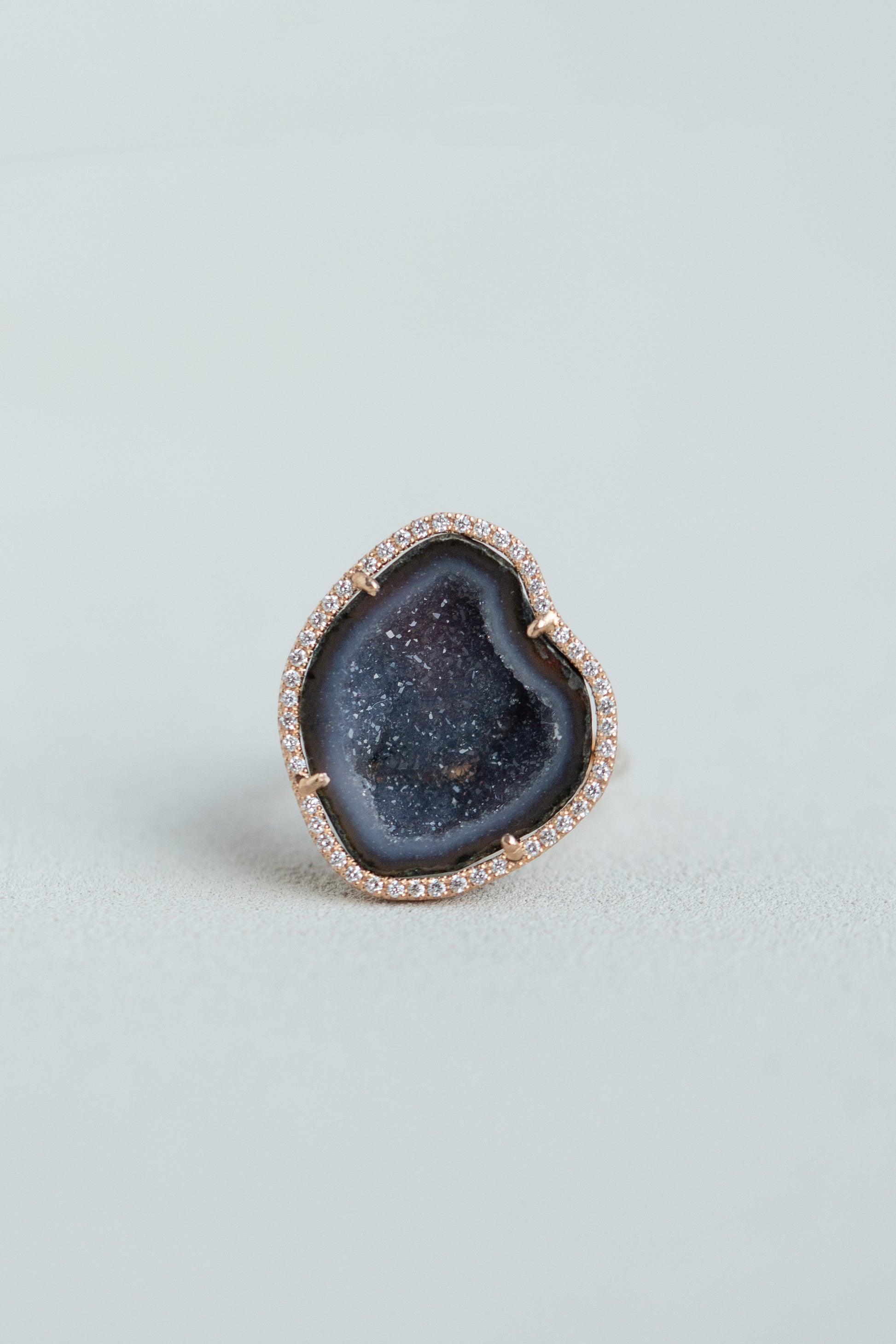 Agates encircled by a halo of diamonds, elegantly realised as a one of a kind ring.