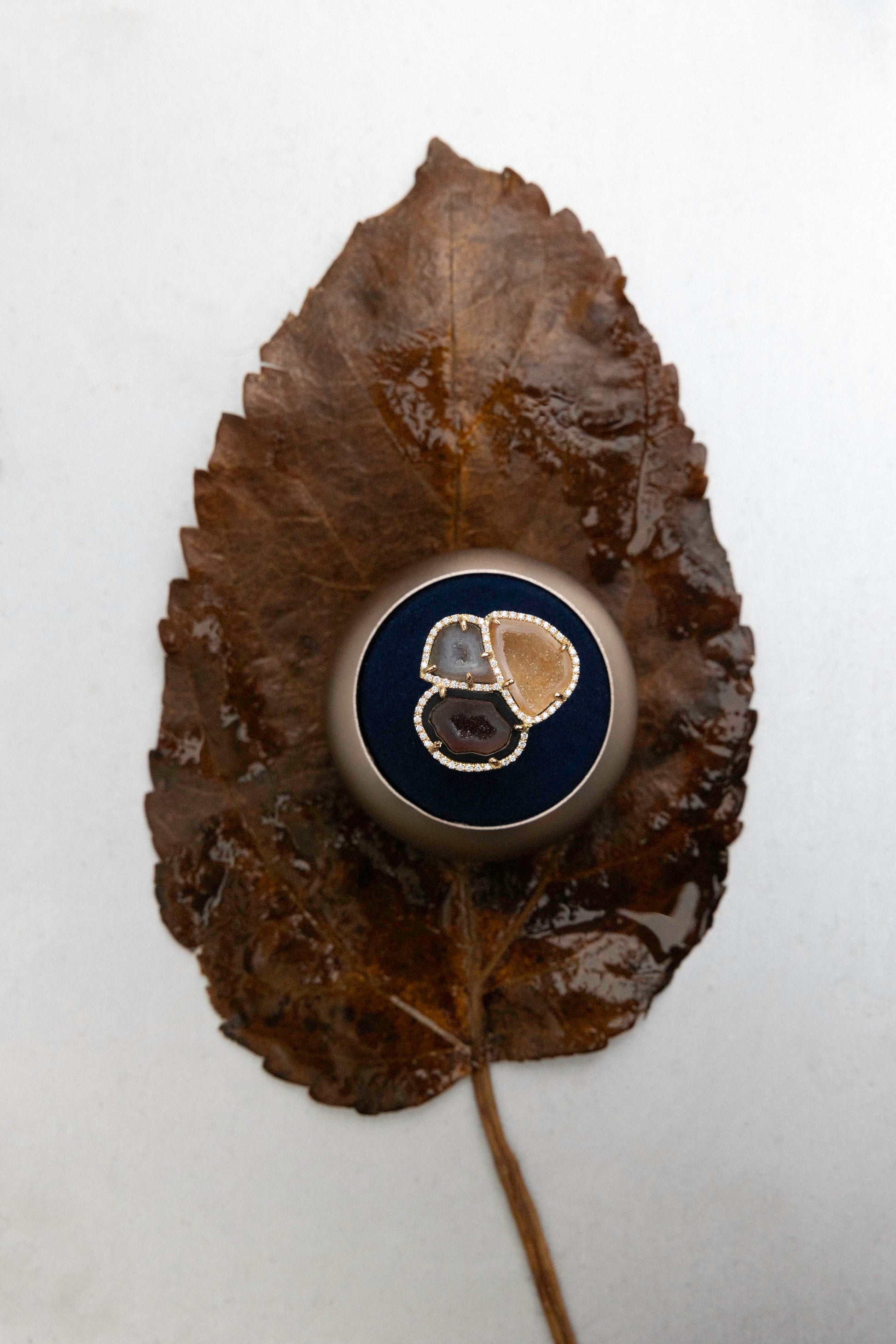 Karolin Van Loon High Jewellery is made from agate geodes, stones that have a simple exterior but open to reveal colourful, crystalline formations at their core. These precious stones are formed through volcanic reactions, sedimentation, and weathering processes over thousands of years before they are brought to Karolin Van Loon’s Antwerp atelier and transformed into singular pieces of fine jewellery.