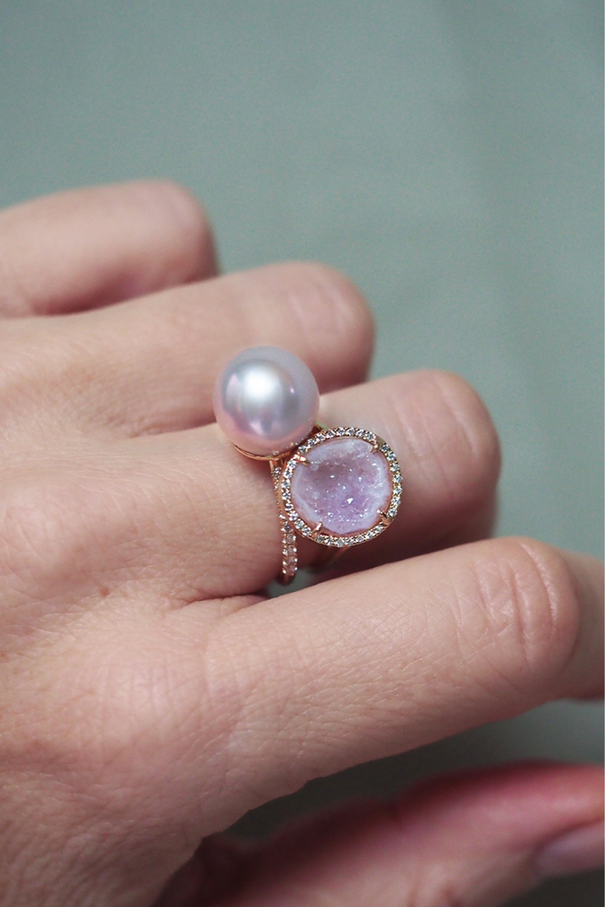 Karolin Van Loon High Jewellery is made from agate geodes, stones that have a simple exterior but open to reveal colourful, crystalline formations at their core. These precious stones are formed through volcanic reactions, sedimentation, and weathering processes over thousands of years before they are brought to Karolin Van Loon’s Antwerp atelier and transformed into singular pieces of fine jewellery.
